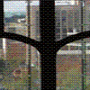 Window at the Canadian Museum of Nature, OttawaA multiplicity of views. In the foreground, the stone framework of one of the windows of the original Victoria Memorial Museum Building, constructed in the early 20th century. In the background, the glass of the new tower, called the Lantern, constructed in 2010. And floating in the open space of the lantern, a large inflated blue whale. View looking north along Metcalfe Street. October 2012 More information on the Museum.
